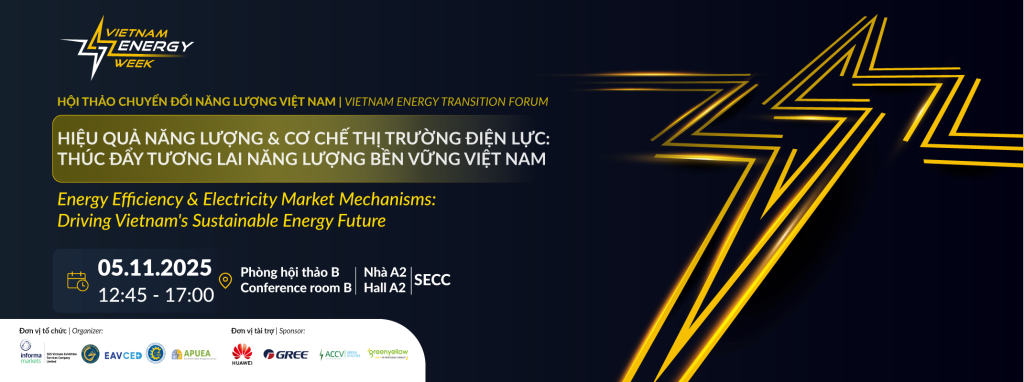 | 13:30 – 13:45 | Phát biểu khai mạc và giới thiệu chương trình | Bà. Nguyễn Thị Phương Yến Phó Giám đốc, Trung tâm Thông tin Năng lượng và Phát triển Thị trường Điện lực, Bộ Công Thương Bà. Lữ Minh Uyên Quản lý cấp cao, Informa Markets Vietnam | |